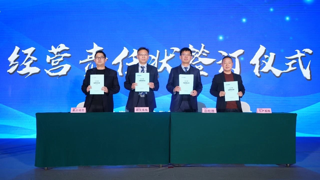 現(xiàn)場,總經(jīng)理與董事長,國內(nèi)外市場負責人、各重點項目負責人與總經(jīng)理,分別簽署2024年責任狀。副總經(jīng)理王世軍代表管理團隊做出表態(tài),堅決高質(zhì)高量完成生產(chǎn)經(jīng)營全年任務(wù)指標。